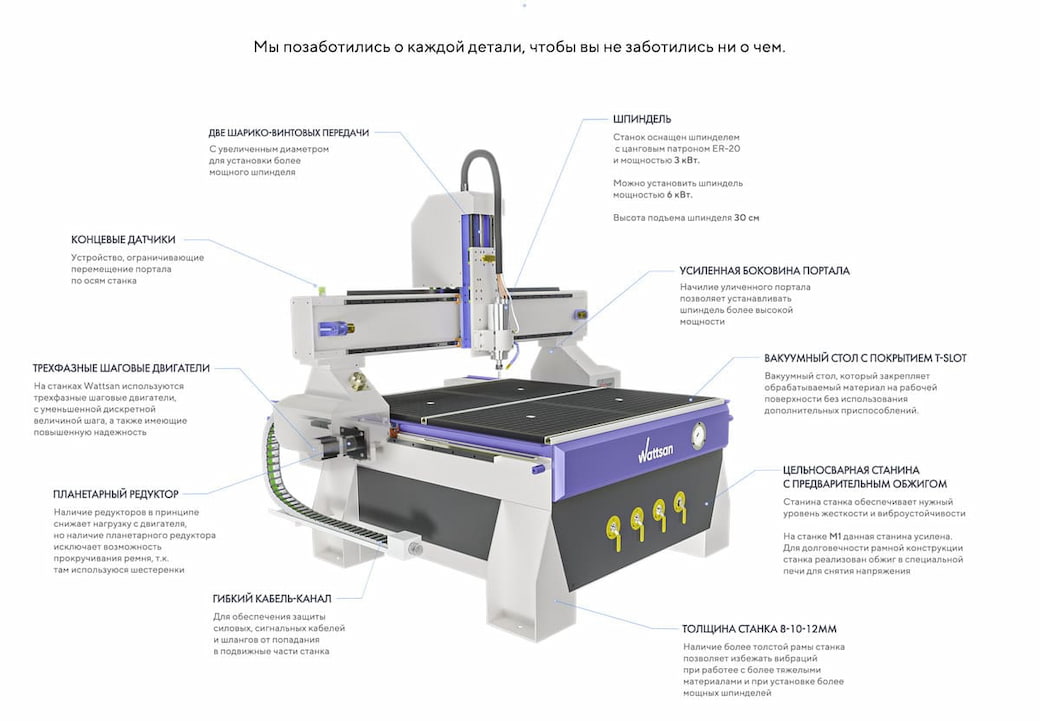 К техническим достоинствам фрезерных станков Wattsan относят: