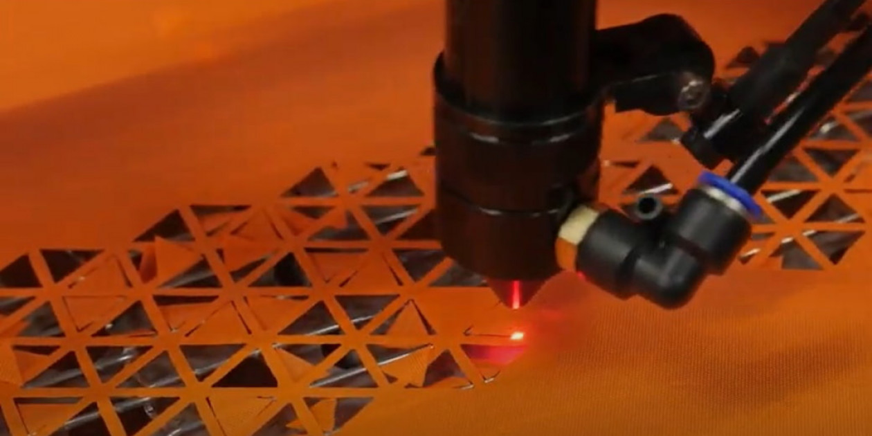 Синтетическая ткань на крае прижигается лазером.
