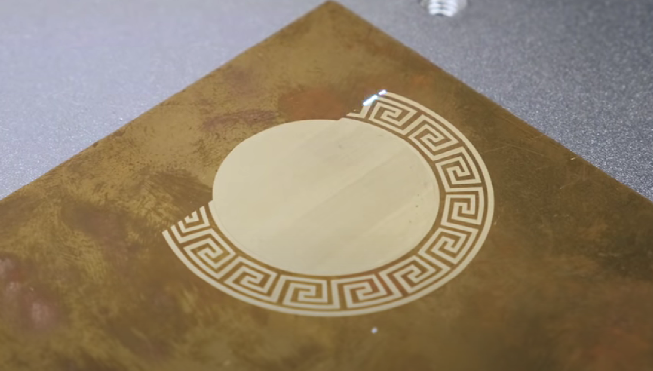 При лазерной маркировке луч воздействует на поверхность, нагревает ее и изменяет цвет или оттенок области, на которую он направлен. Текст или картинка получаются плоскими, так как не происходит углубления в поверхность материала.