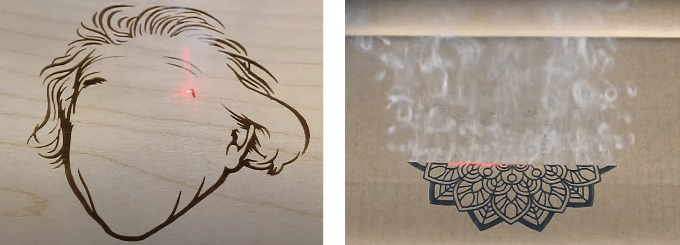 Обычно зависимость такая: высокая мощность дает темный оттенок, и наоборот. Это действует для неметаллических материалов. С металлом, например, так не работает. Так что градиенты проще получить на дереве с СО2 лазером, чем на металле с оптоволоконным аппаратом.