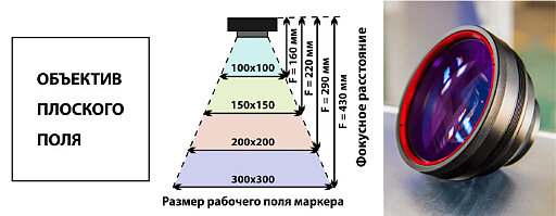Размер рабочего поля. Зависит от установленной линзы. Для многих моделей лазерных маркеров доступно несколько линз в наборе. Минимальный размер составляет 50х50, максимальный 300х300. Стоит отметить, что для решения разных задач лучше использовать соответствующие линзы.