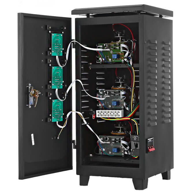 При установке трёхфазного стабилизатора можно защитить все потребители сразу или защитить фазы по отдельности