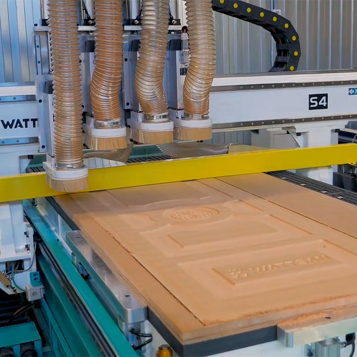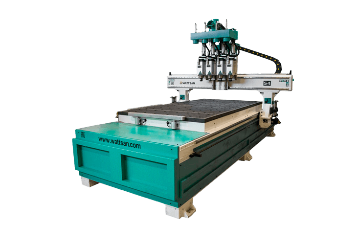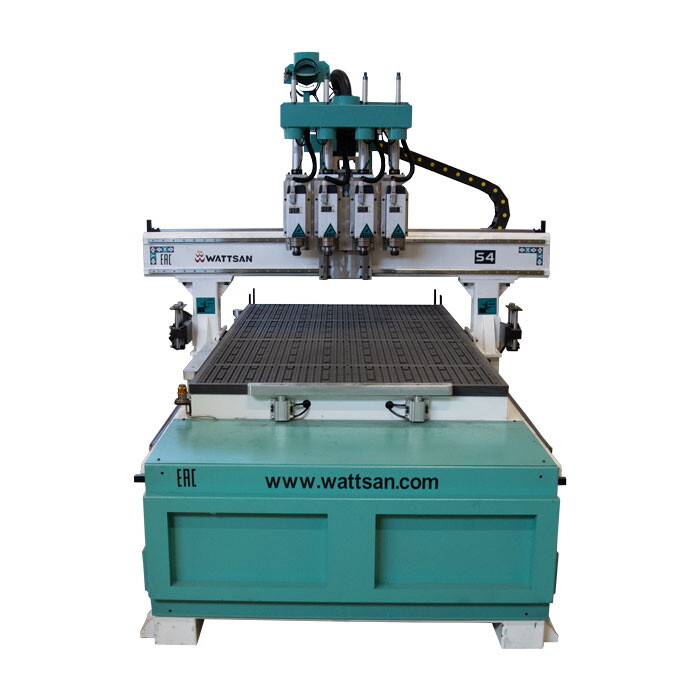 Профессиональный фрезерный станок WATTSAN M4S 1325 отличается наличием сразу 4 рабочих шпинделей, работающих в автоматическом режиме. Такое количество рабочих шпинделей позволяет эффективно использовать станок для потокового производства.