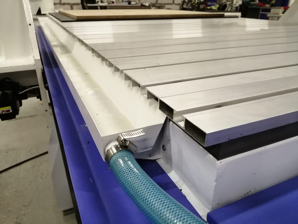 Станок Wattsan M3 1616, по желанию, оснащается смазочно-охлаждающей жидкостью (СОЖ), применимую при фрезеровке камня и металла с целью смазки и охлаждения режущего или абразивного инструмента, а также поверхности обрабатываемой заготовки.