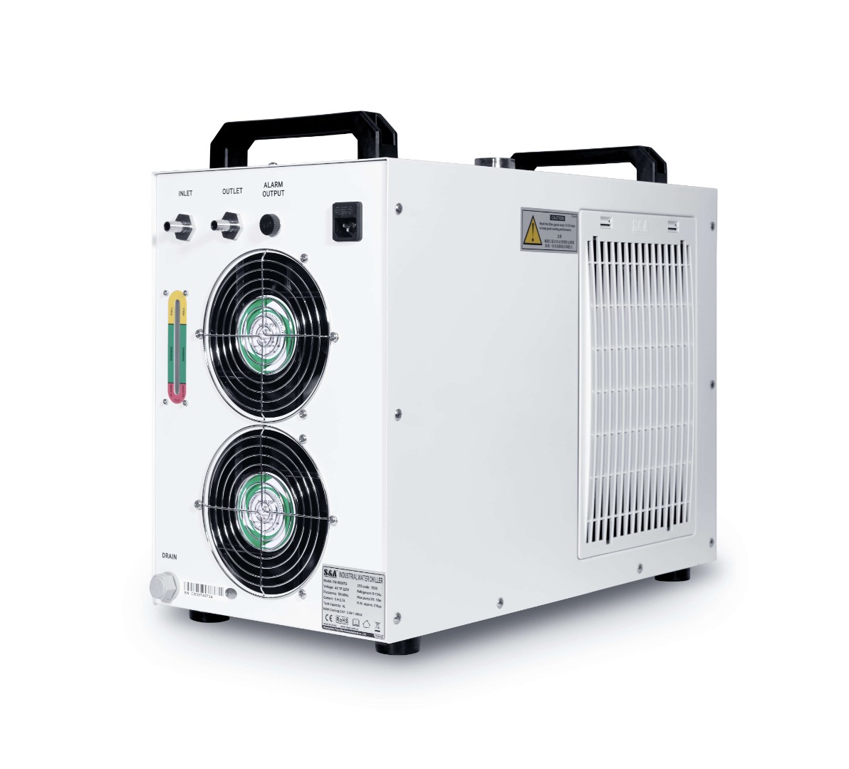 Чиллер S&A CW 5000TI относится к категории профессионального оборудования для охлаждения газовых трубок лазерно-гравировальных станков. Модель рекомендована для замещения встроенной охлаждающей системы, размещенной внутри излучателя. Подсоединение чиллера гарантирует более быстрое понижение температуры активной газовой смеси и стабильное поддержание ее на заданном уровне.