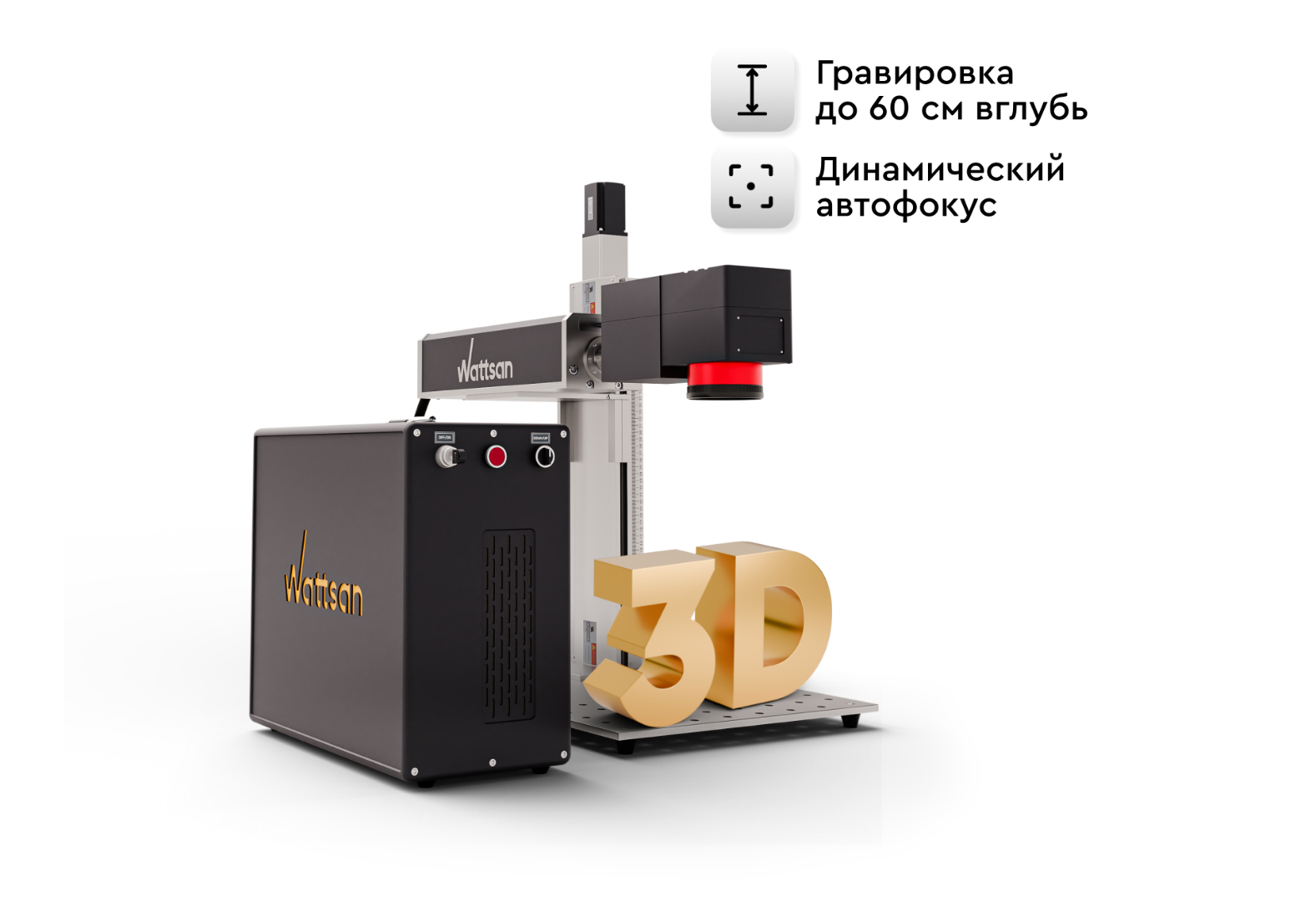 Лазерный маркер Wattsan FL 3D с ДИНАМИЧЕСКОЙ АВТОФОКУСИРОВКОЙ предназначен для маркировки объектов с неровной поверхностью.