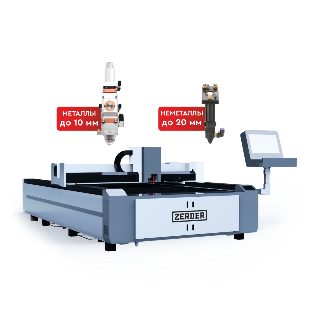 Zerder COMBI 1325 — профессиональный комбинированный лазерный станок для работы с металлом и неметаллами. Идеален для рекламно-производственных компаний, где ежедневно приходится работать с абсолютно разными материалами: оргстеклом, пластиком, нержавеющей сталью и другими.