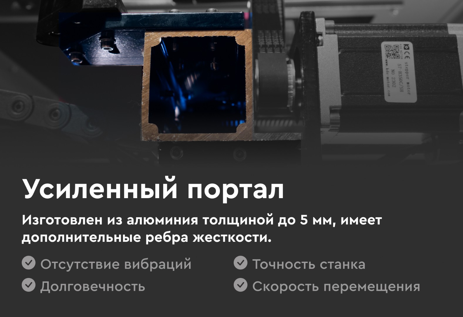 Порталы на лазерных станках Wattsan изготавливаются из алюминия толщиной от 3 до 5 мм и имеют дополнительные ребра жесткости, что обеспечивает долговечность работы.