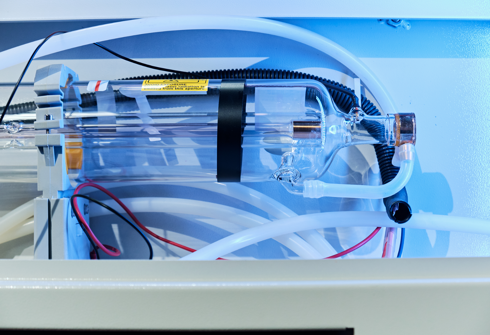 Мы установили универсальные крепления для лазерной трубки, которые оборудованы регулировочным винтом и измерительной шкалой, что позволяет производить их быструю замену вне зависимости от диаметра/мощности трубки и оперативно осуществлять юстировку станка.