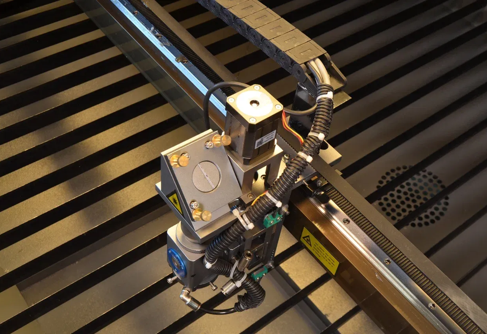 Мы специально заменили двухфазные шаговые двигатели на трехфазные. Это позволило уменьшить величину шага относительно аналогов и значительно увеличить качество гравировки, а также улучшить плавность хода, что особенно актуально при резке акрила и толстой фанеры.