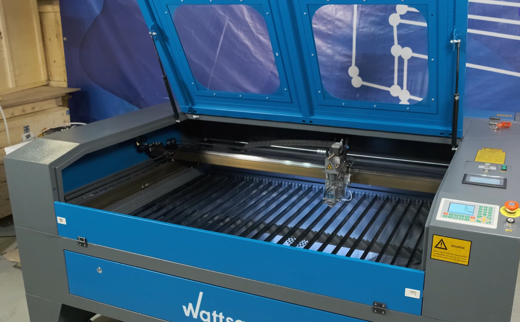 Порталы на лазерных станках Wattsan изготавливаются из алюминия толщиной от 3 до 5 мм и имеют дополнительные ребра жесткости, что обеспечивает долговечность работы.