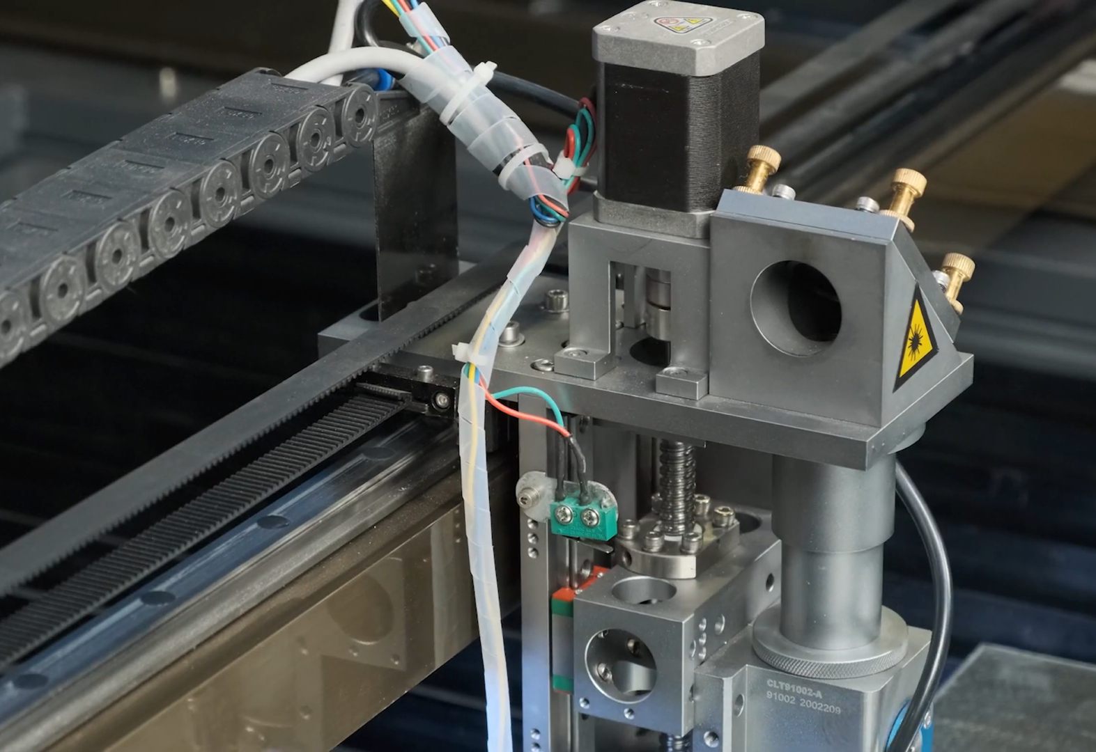 Мы установили универсальные крепления для лазерной трубки, которые оборудованы регулировочным винтом и измерительной шкалой, что позволяет производить их быструю замену вне зависимости от диаметра/мощности трубки и оперативно осуществлять юстировку станка.