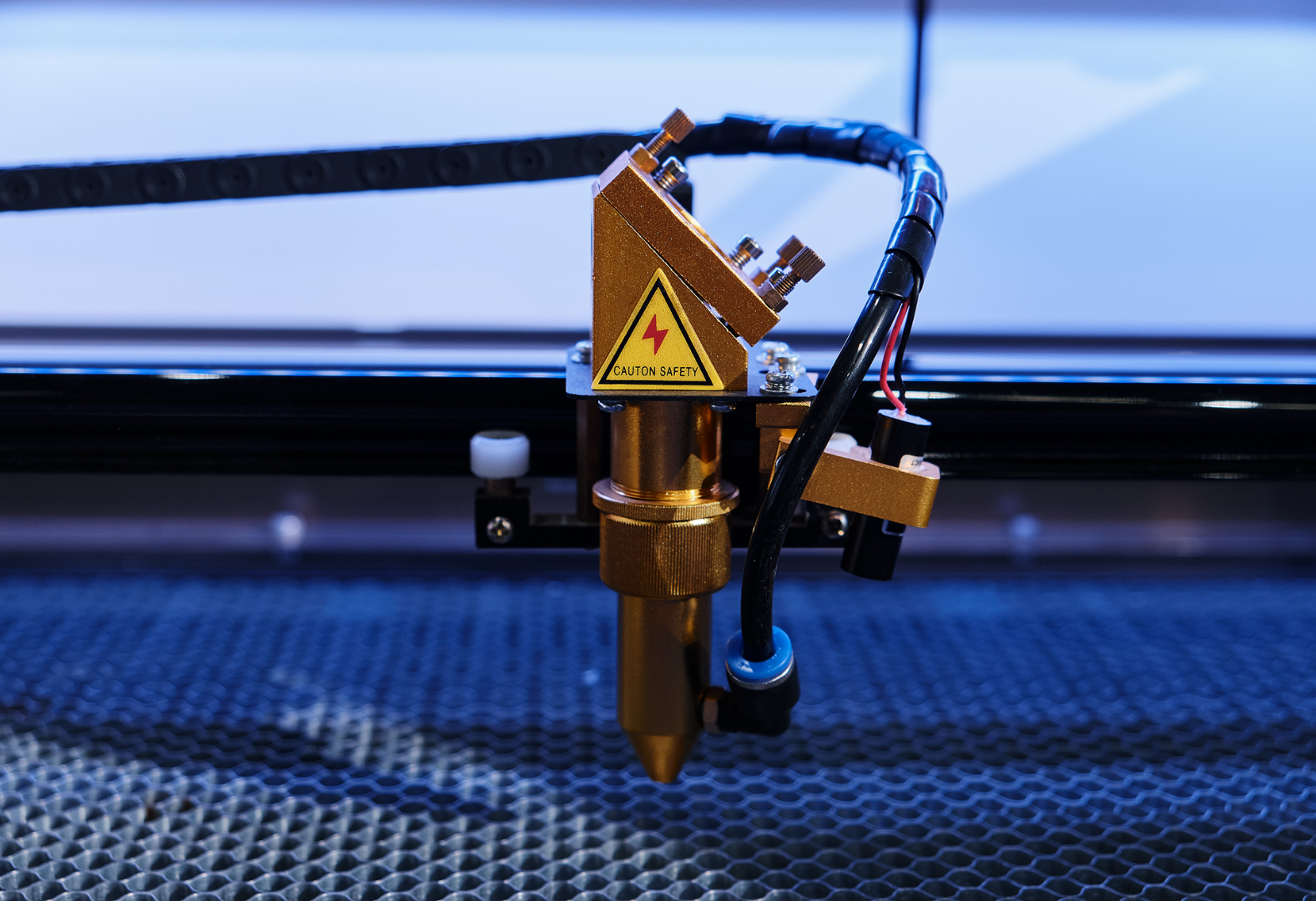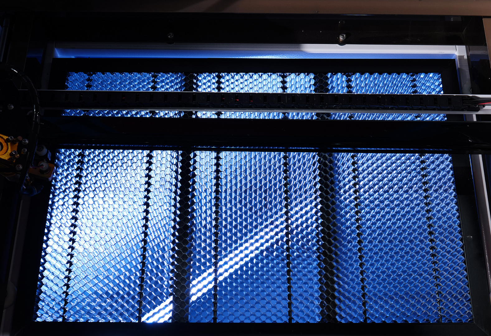 Сотовая поверхность стола удобна для резки мелких заготовок, которые не проваливаются под стол.