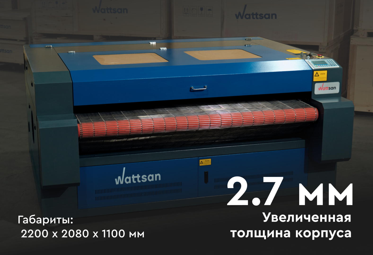 На станках Wattsan толщина корпуса составляет 2,7 мм и выше, в зависимости от размера станка. Устойчив к нагрузкам и вибрациям, позволяет работать на максимальных скоростях. Круглосуточная эксплуатация без технологических остановок станка.