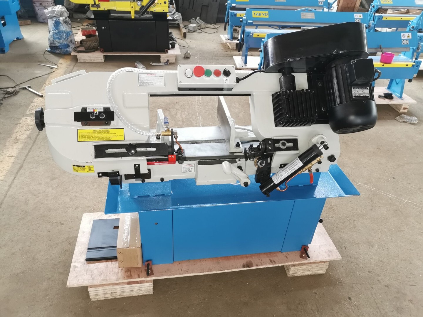 Высота полотна станка 20 мм, в зависимости от комплектации поворот губок тисков или возможность поворота рамы пилы, а также привод клиноременной или зубчатый.