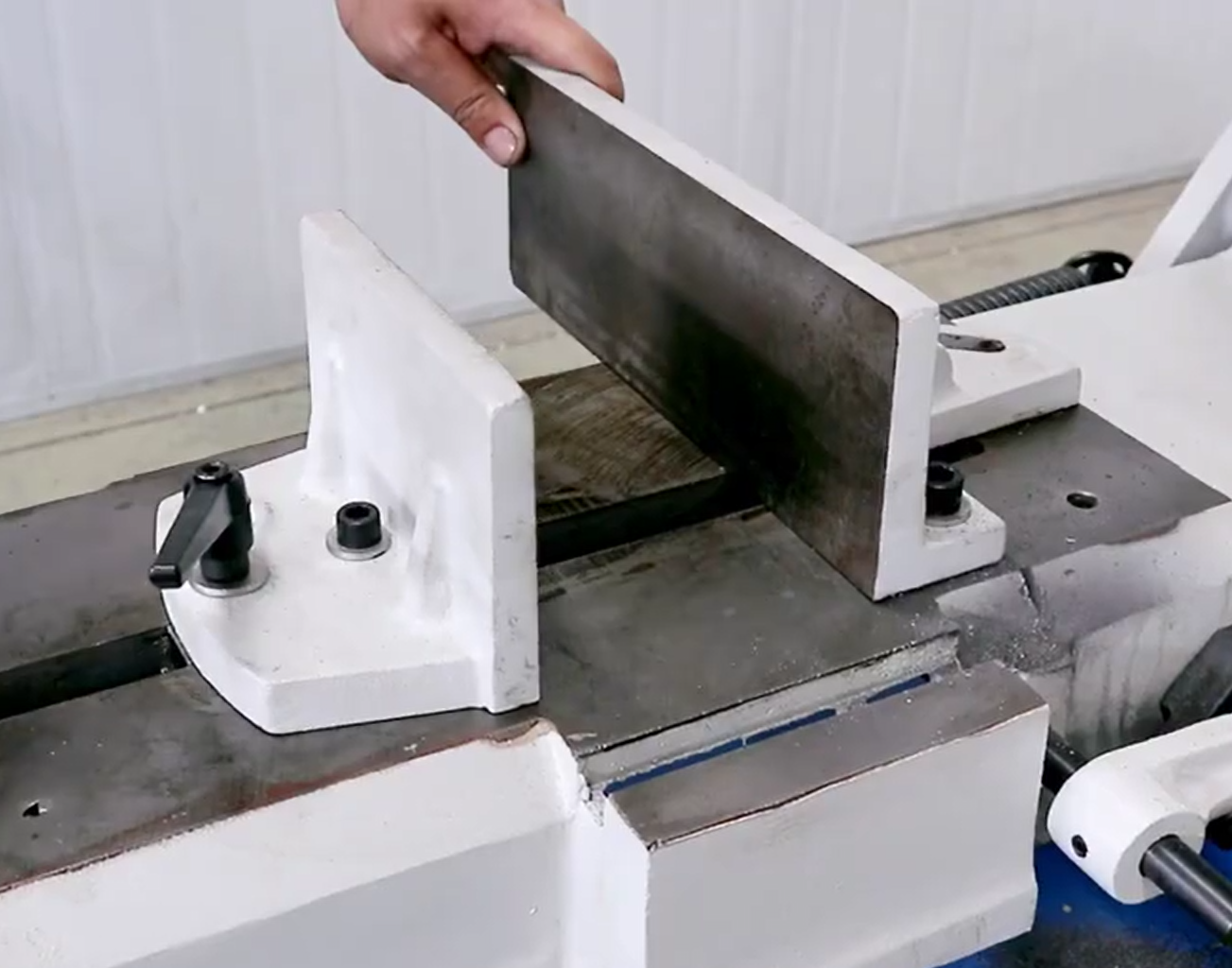 Его основание имеет вид стального стола, установленного на 4 колеса. Оснащен чугунной станиной с мощными тисками. Угол резки 45-90о.