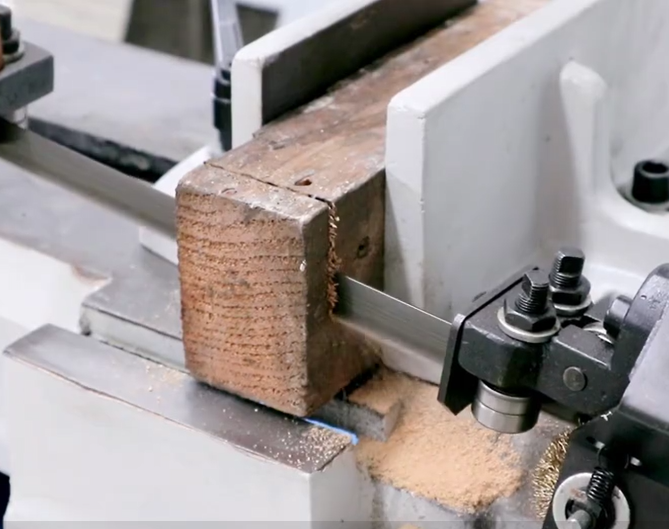 Распилы заготовок диаметром до 180 мм в полуавтоматическом режиме с ручным возвратом пильной рамы в первоначальное положение. Пила опускается под собственным весом.