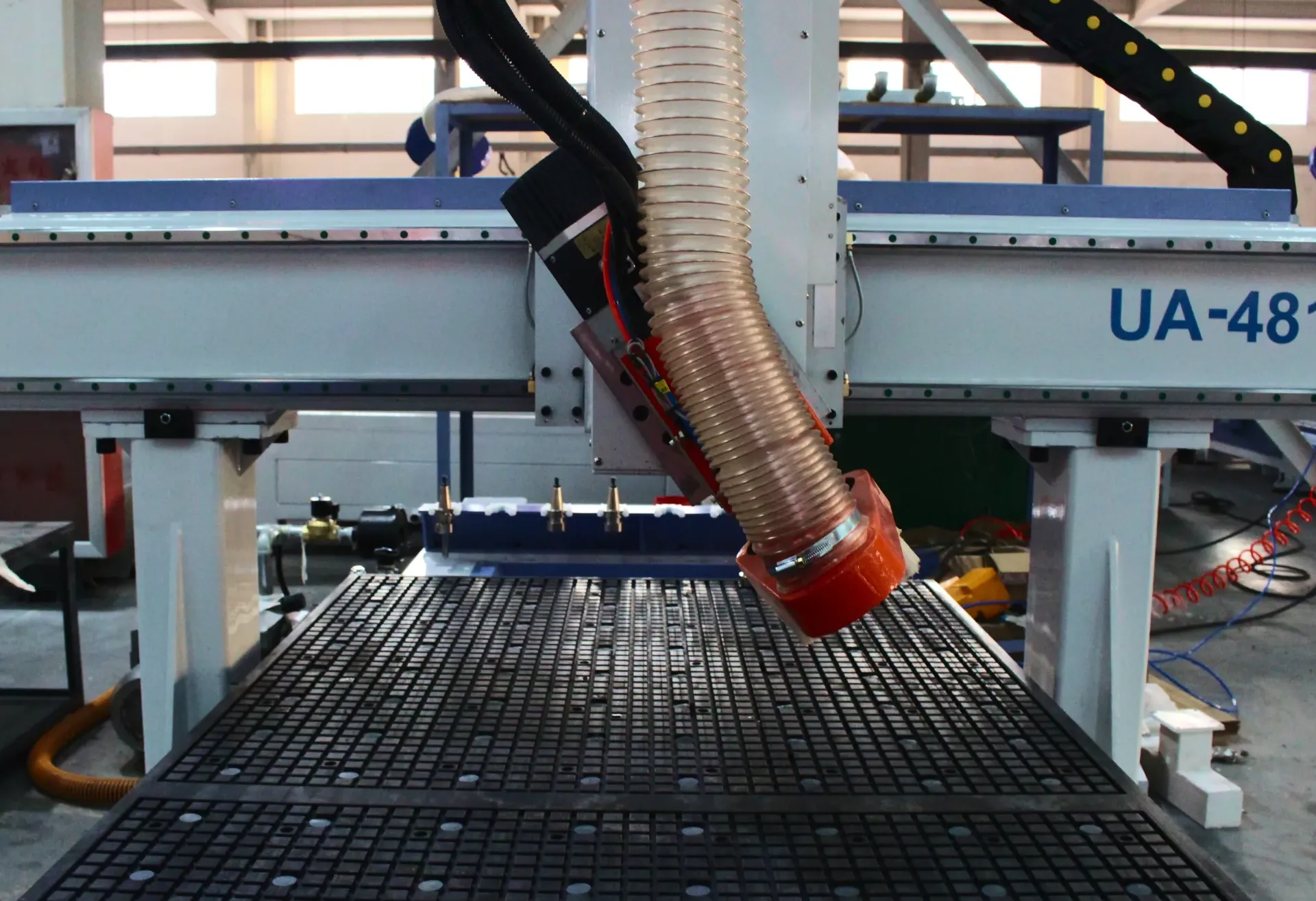 - Двухслойный вакуумный стол обеспечивает увеличенную площадь адсорбции и стабильное удержание заготовки