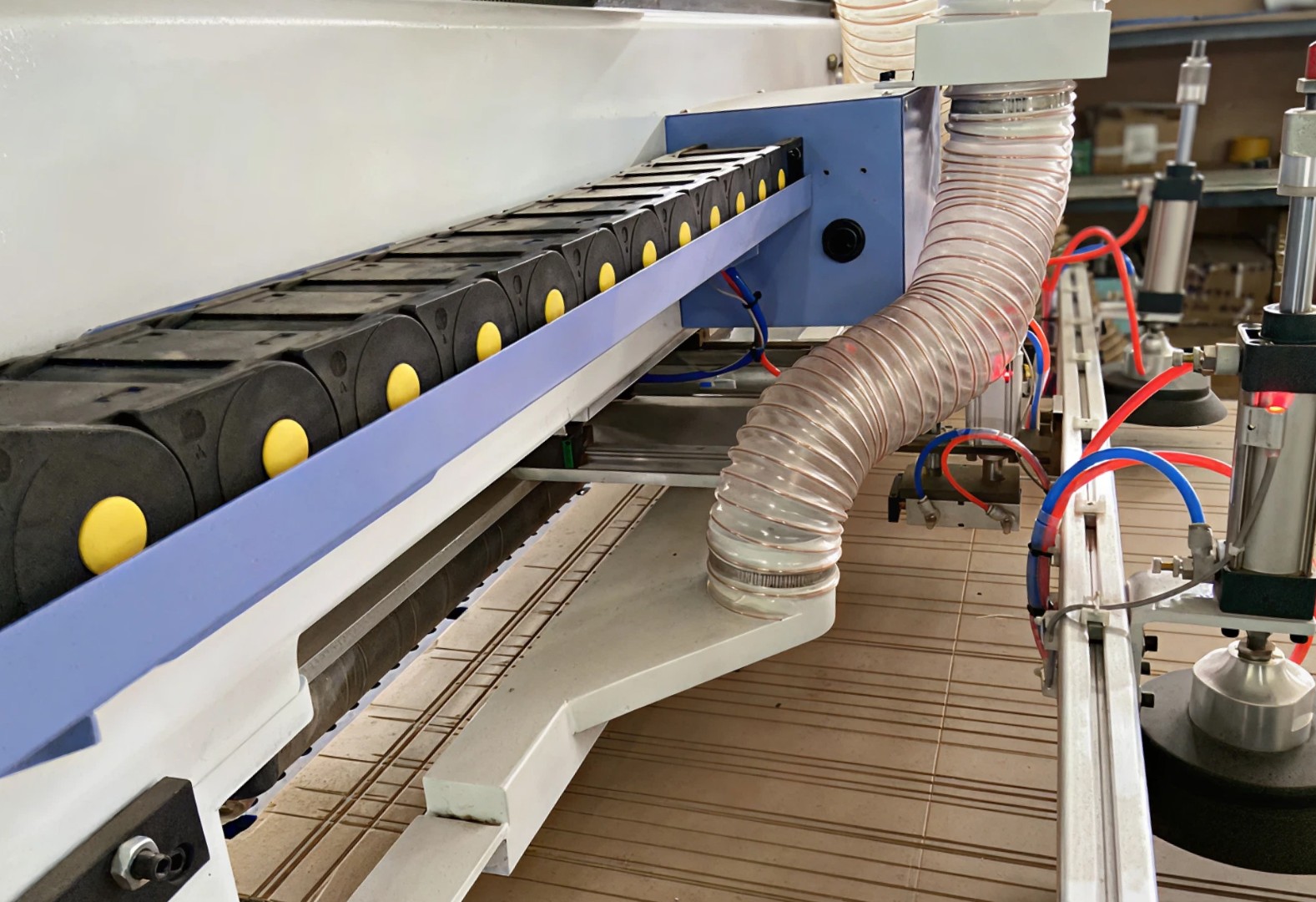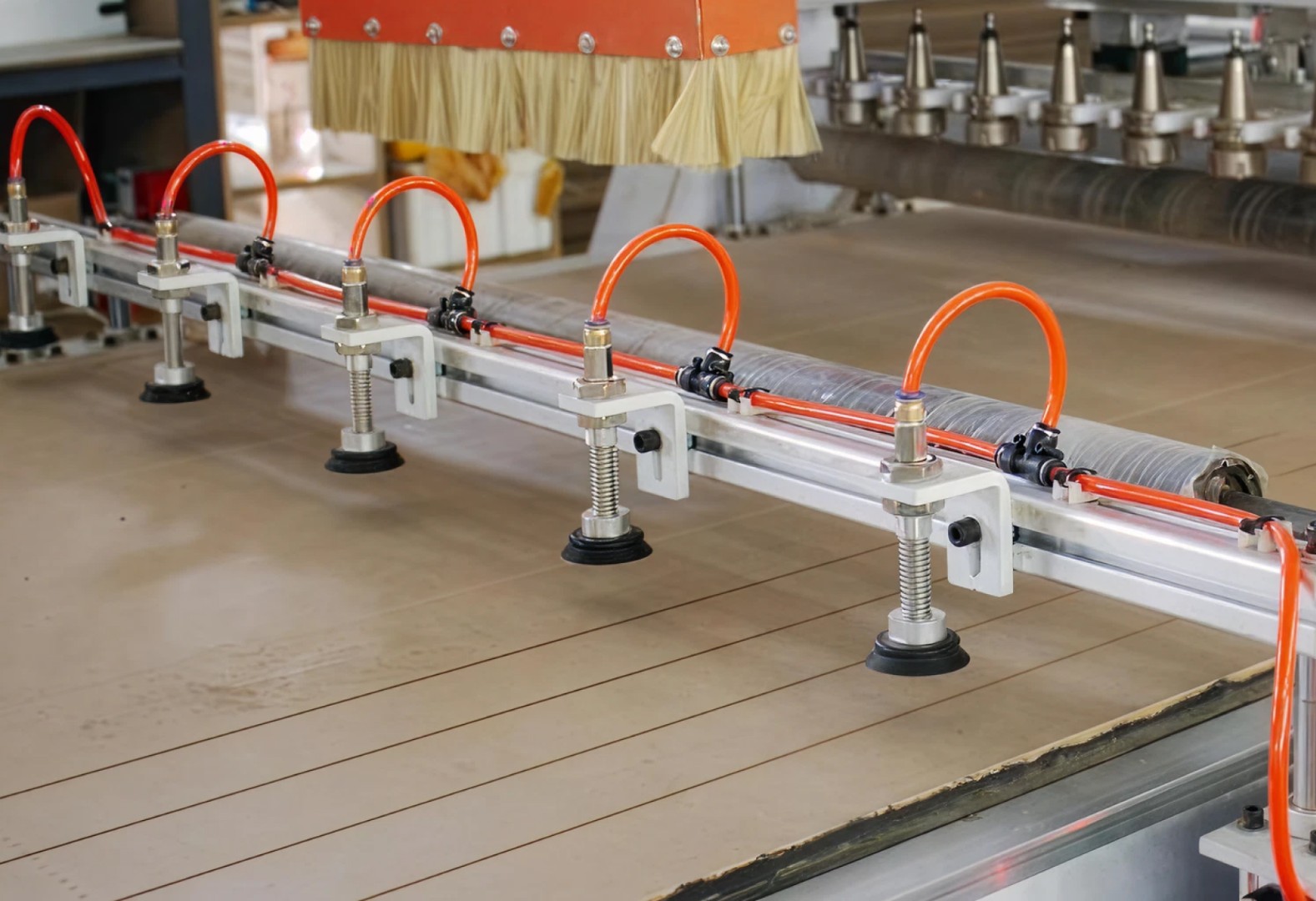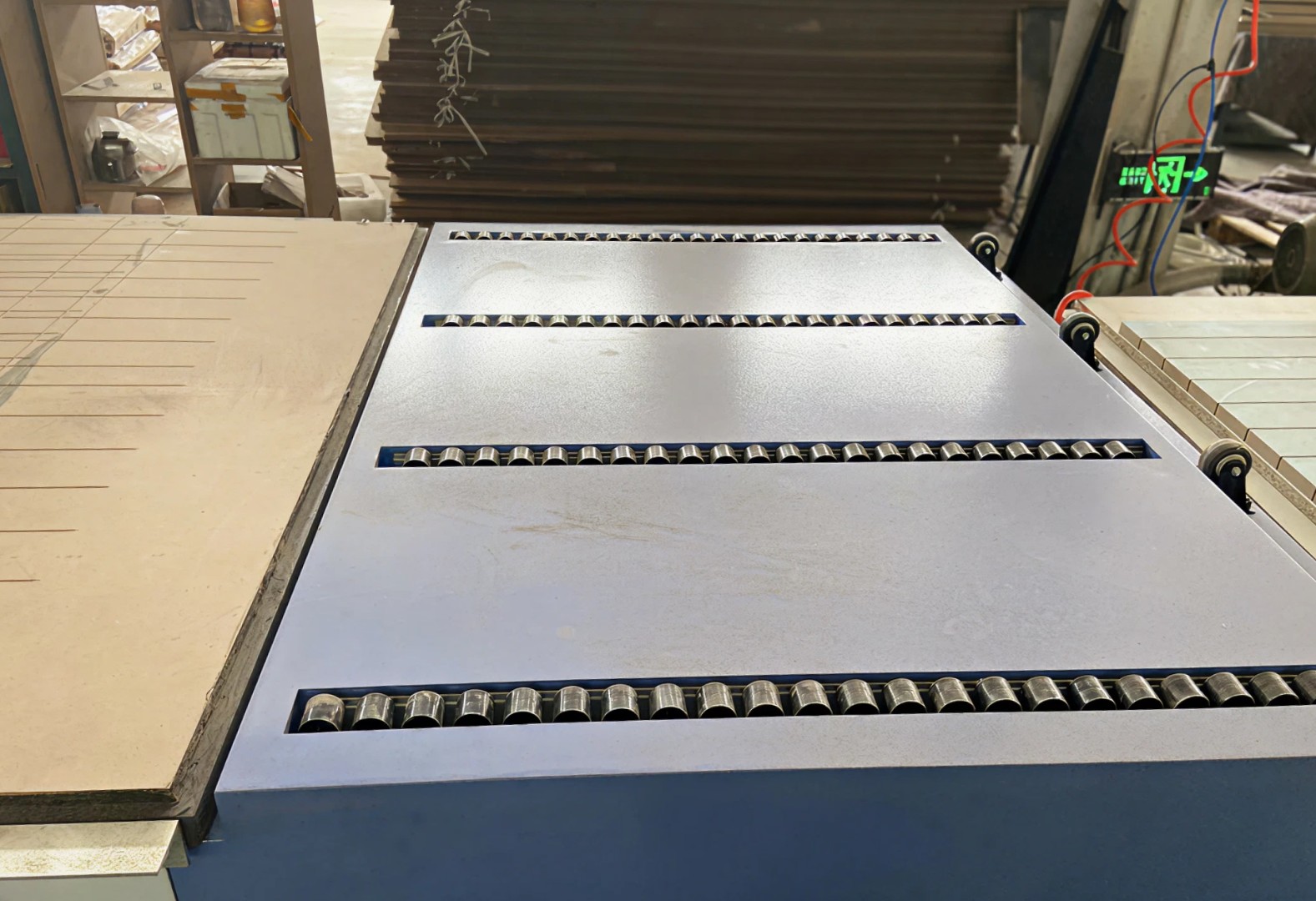 Прижимные ролики в сочетании с адсорбционными перегородками обеспечивают стабильное прижатие листового материала во время обработки.