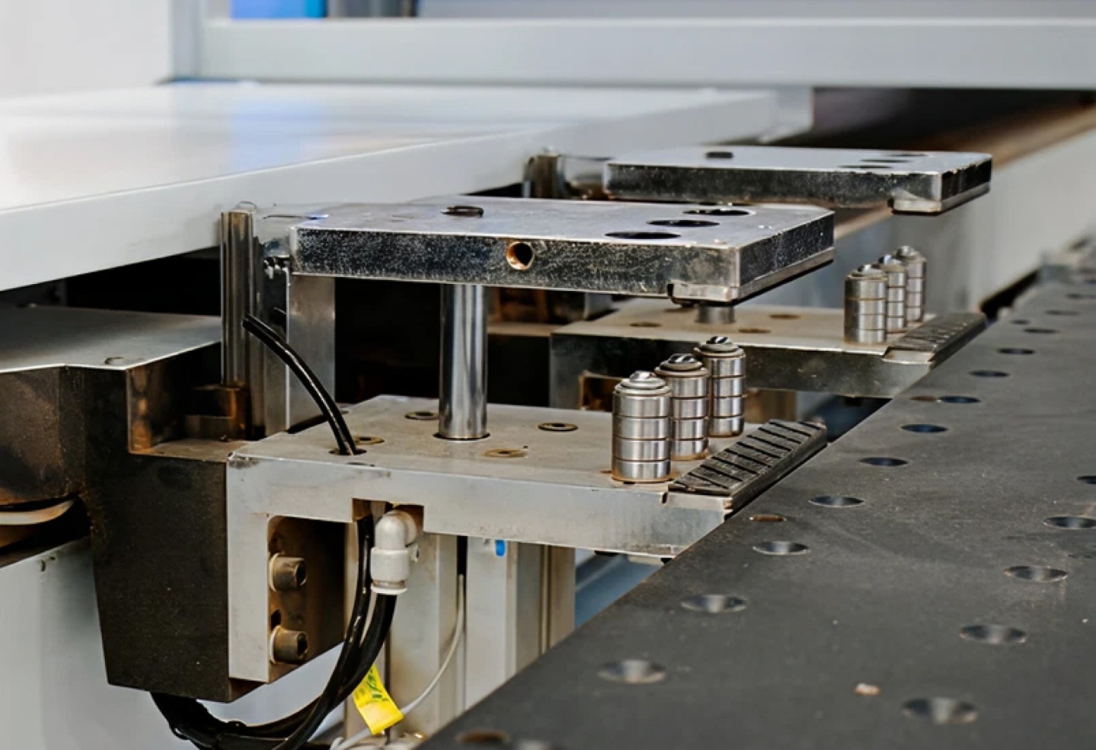 - Оснащен пневматическими шариками, которые позволяют легко перемещать заготовку без царапин